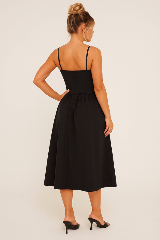 Women’s Midi Cocktail Dress with V-Neck – For Formal Occasions